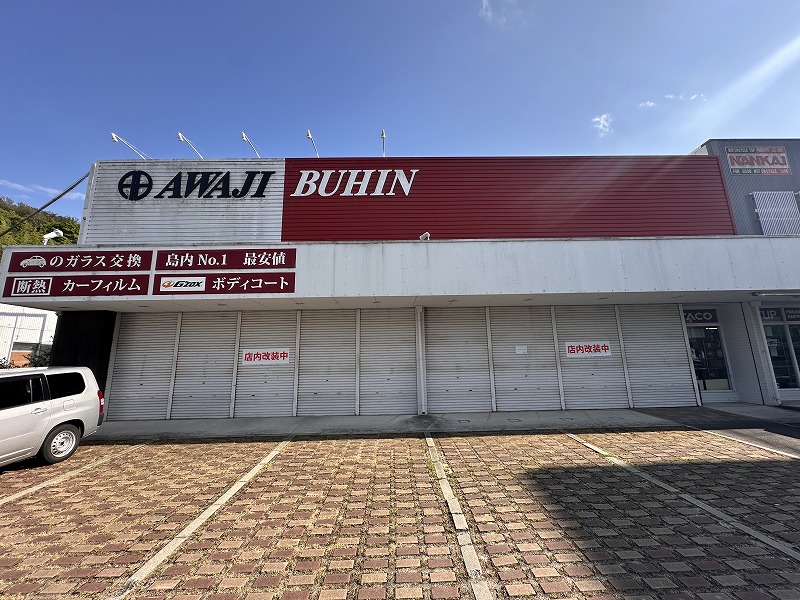 洲本市の主要道路沿い(旧国道28号線)に位置する、視認性の高い貸物件です。